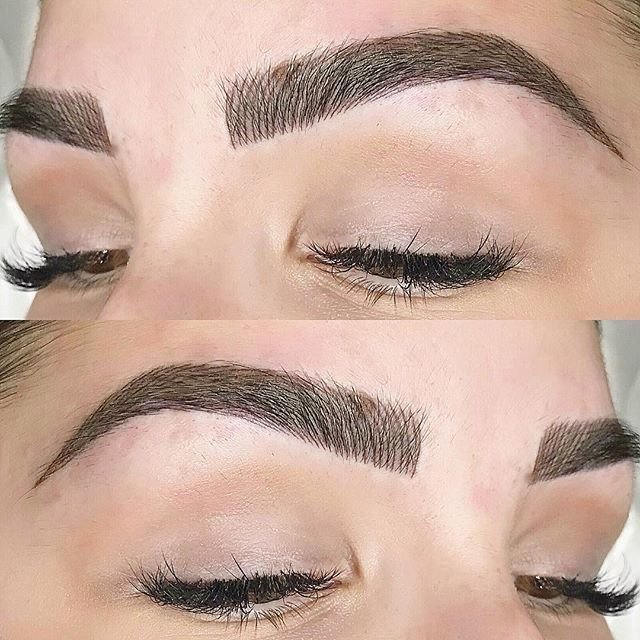 Combination brows are semi – permanent technique blending microblading (fine , hair strocks) for natural texture at the front of the brows with a soft powder/ ombré shading.